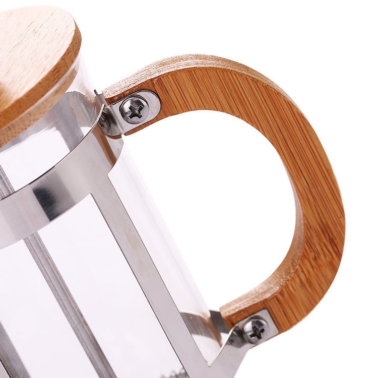 Olive wood high borosilicate method pressure pot hand pressure coffee pot tea maker household teapot health flower teapot